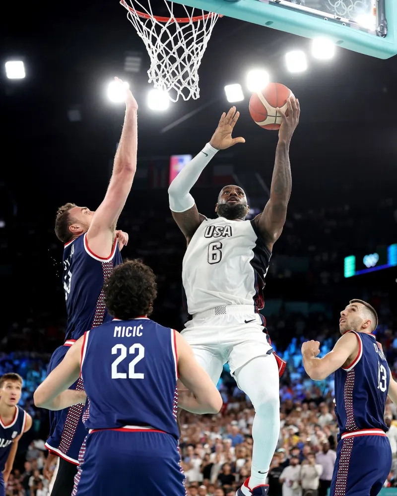 据统计,此战过后,詹姆斯已经在本届奥运会中同时领跑美国男篮的得分、篮板和助攻三项数据。