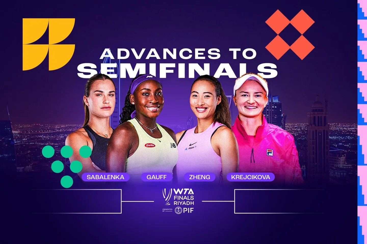 11月08日讯 今晚23点,WTA年终总决赛半决赛开打,郑钦文对阵克雷吉茨科娃。另一组对阵则是萨巴伦卡vs高芙。